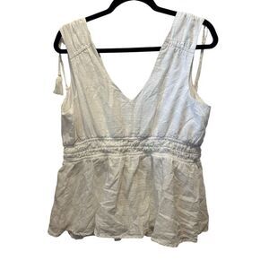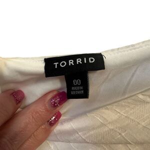 Torrid Window Pane V-Neck Sleeveless Tassel Cinched Babydoll Tank White Size 00