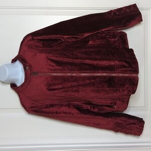 Torrid Wine Ruby Red Velvet Moto Jacket 1X 14/16 EUC