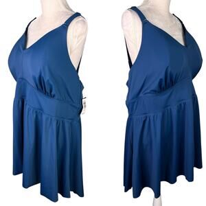 Torrid Wire Free Cross Back Tankini Top Poseidon Blue 6D/DD New