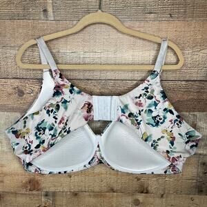 Torrid Wire-Free Lightly Lined Print Plunge 360° Back Smoothing Bra. Style# 17448848. Size 46D. Color ~ Impression Floral Angel Wing Pink. Front-adjustable straps. Wide side band to keep things smooth. Back hook-and-eye closure. Floral impression print. Excellent condition.