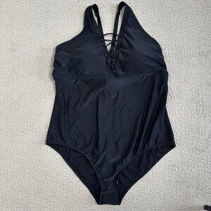 Torrid Wireless Grommet Lace Up One Piece Swimsuit Size 4X Black