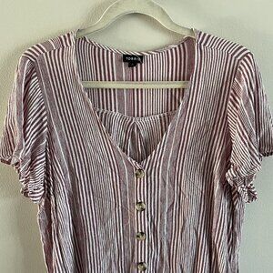 Torrid Wmn Sz 0 US L Red White Striped Short Sleeve Rayon Crepe Button-Front Top.