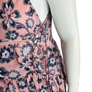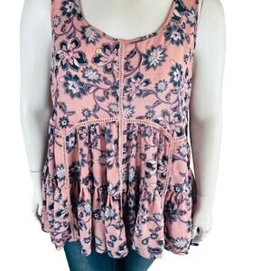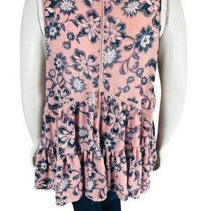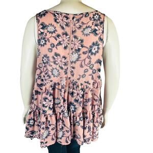 Torrid Womans Sz 1X Plus Blouse Pink Floral Sleeveless Side Tie Ruffle