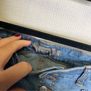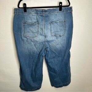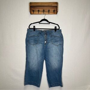 Size woman’s 22 Button fly medium wash Flare wide leg crop jeans stretchy UV71