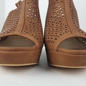 Torrid Laser WOMEN Cut Brown Wedge Bootie Wide Width 10 Heel Strap summer spring