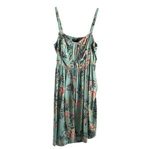 Torrid Women 1X Mint Green Floral Pockets Challis Bow Front Sleeveless Sundress