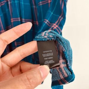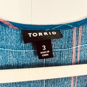 Torrid Women 3X Blue Plaid V-Neck Blouse Lightweight Eyelet Ribbon Flowy Hem