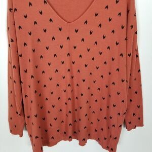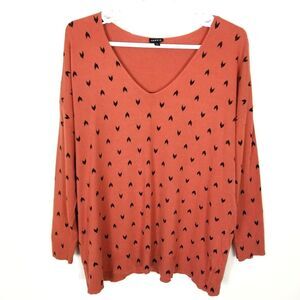 Torrid Women Chevron Heart Print Pullover Sweater Sz 3X Orange V Neck