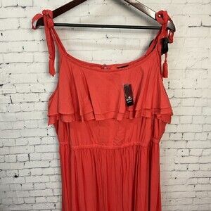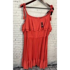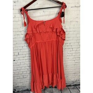 Torrid Women Coral Ruffled Tiered Challis Dress Tassel Tie Summer Skirt Size 3 T2