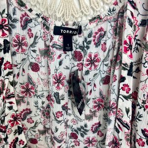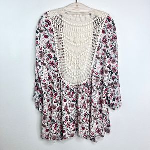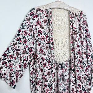 Torrid Women Cream Floral Open Front Kimono Plus size 1 Crochet Crinkle Gauze 1X