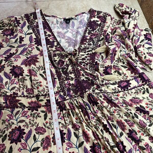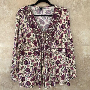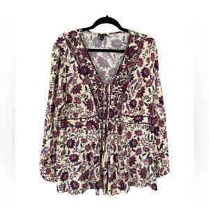 Torrid Women Floral Blouse Long Sleeve Rayon V-Neck Embroidered Purple Size 2/2X