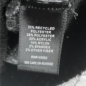 Fabric: Acrylic, Polyester, Recycled Polyester, Nylon, Spandex (Vegan Cashmere)