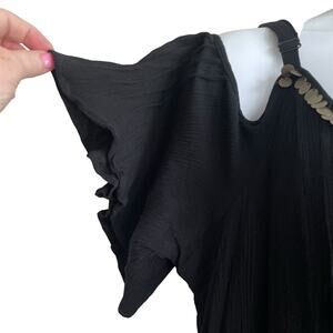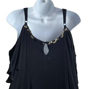 Torrid Women Mini Shift Dress L Black Cold Shoulder Sequin Gauzy Fairygoth Boho