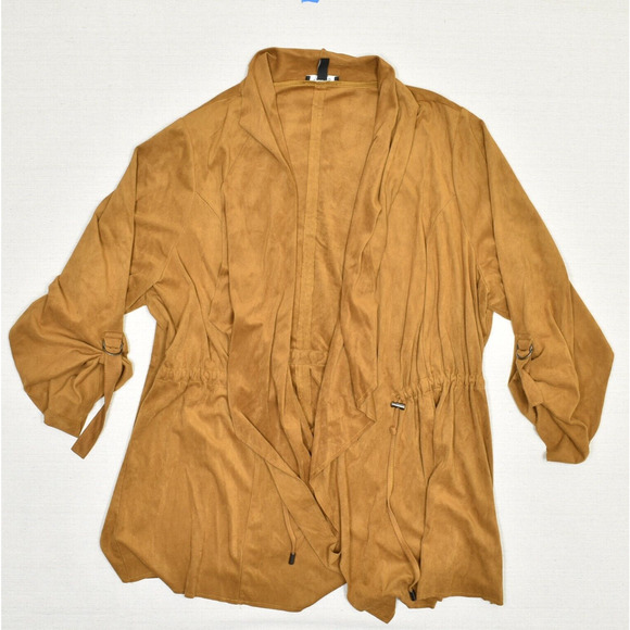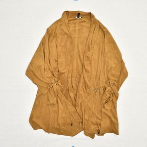 Torrid Women Open Cardigan Blazer Solid Polyester Brown Plus Size 4 Faux Suede
