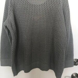 Woman Gray Open Weave Long Sleeve Sweater by Torrid. Large Pink Heart. Sz. 1 (1X)