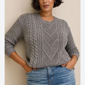 Torrid Women Pullover Cable Knit Tie Back Sweater Grey Plus Size 3 Stretchy Crew neckline