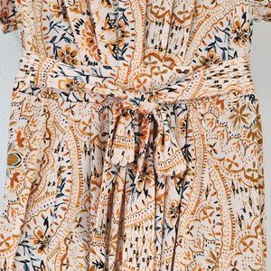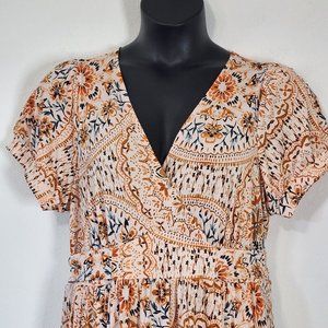 Torrid Women Size 1 / 1X Faux Wrap Dress Pockets Orange Blue Floral Print