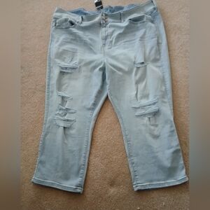 Torrid Women Sz 26 Cropped Jegging Light Blue Stretch Distressed Denim Pants