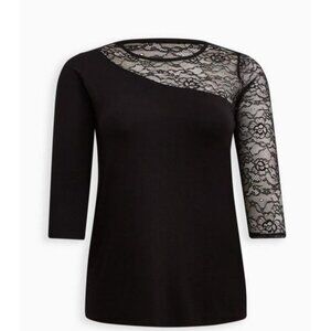 Torrid Women Top Size 5X Black Pullover Asymmetrical Lace Long Crew Neck Semi Sh