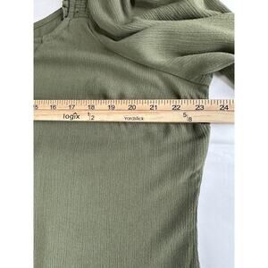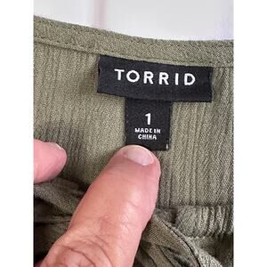 Torrid Women Tunic size 1 Ruched Green 3/4 Sleeve Tie Neck Pullover Lightweight
