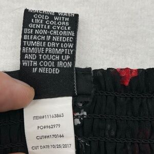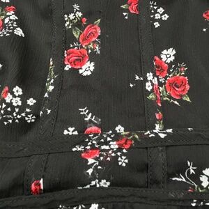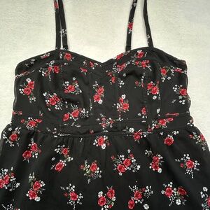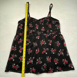 This item is a Torrid Women's Plus Size Chiffon Peplum Cami Top, size 0, in a black base with red and white floral print.