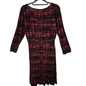 Torrid Women's 0 Wrap Front Midi Dress Black Red Abstract Line Print 3/4 Sleeve