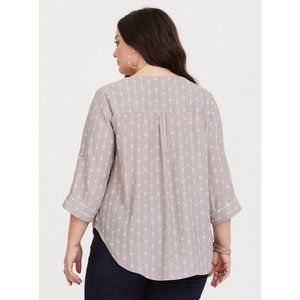 Torrid Womens 00X Gray Arrow Print Harper Crepe Button-Up 3/4 Sleeve Blouse