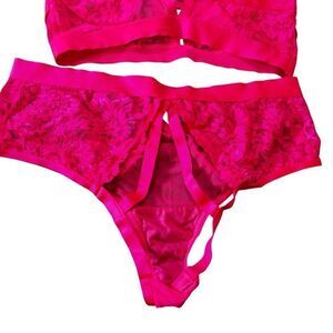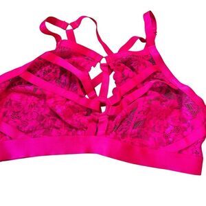 Torrid Womens 0 US Large Floral Lace Strappy Bralette 00 US Medium Panty Pink