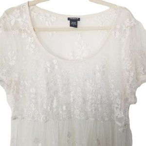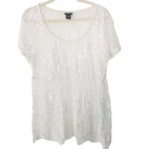 Torrid Womens 0X White Floral Print Sheer Lace Short Sleeves Scoop Neck Blouse