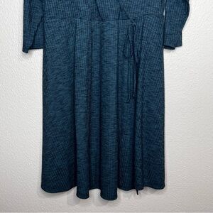 Torrid Womens 1 1X Dark Green Ribbed Faux Wrap Dress Long Sleeve Fit & Flare