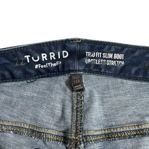Torrid Womens 10-14 (30X29) Trio Fit Slim Boot Limitless Stretch Dark Blue Denim