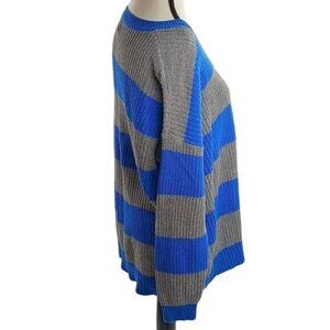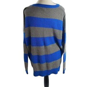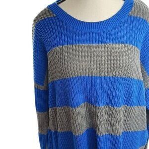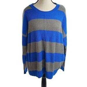 Torrid Womens 1X Blue Gray Striped Knit Pullover Sweater Long Sleeve Top