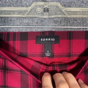 Torrid Women’s 1X Midi Pencil Skirt Stretch Workwear Red Black Plaid Rockabilly