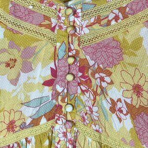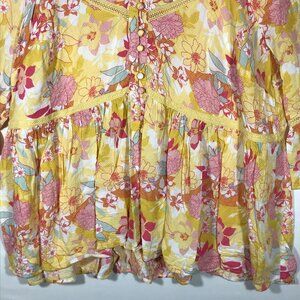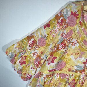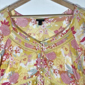 Torrid Women's 2 Yellow Floral Pull Over Raglan 3/4 Trumpet Sleeve Blouse Top
