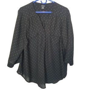 Torrid Womens 2X Black Polka Dots Harper Georgette Pullover 3/4 Sleeve Blouse