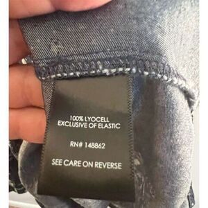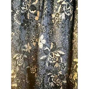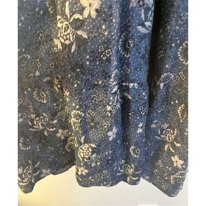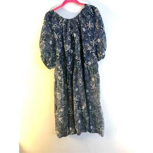 This Torrid dress is a plus-size 2X style featuring a chambray fabric with a floral pattern. It has a smocked neckline, puff sleeves, and side pockets. Made from lyocell, the dress is short in length and comes in a blue color. Manufactured in China, it is new with tags.