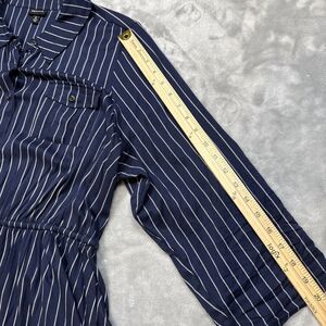 Torrid Women’s 2X Navy White Striped Button-Up Shirt Dress Tie Waist Roll Tab