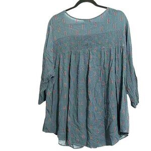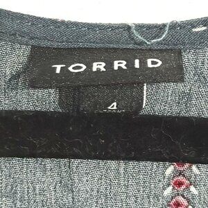 Torrid Womens 4 Blue & Red Peasant Style Blouse W/ Button Front