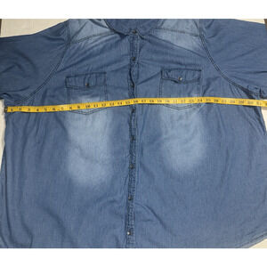 Torrid Womens 6X Shirt Denim Chambray Western Rodeo Fall Cowgirl Cotton Soft * Size: 6X * Condition: Pre-Owned Great Condition (see pics for details) * Features: Buttons, Chest Pockets *Style Profile: denim, western, cowgirl, rodeo, Country, Ranch, Southwestern, Western, Rodeo, Equestrian , soft, lightweight, cotton *Flaws: No Holes, stains, or tears * Washing Instructions: Machine wash * Please see photos for measurements (in inches). All measurements provided are approximate for reference purposes. *Items are from a Non-Smoking & Pet Free environment. *Super Fast Shipping!
