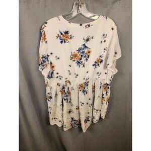 Torrid Womens Babydoll Challis Button Front Top Size 2 Floral Short Sleeve