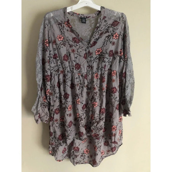 Torrid Women’s Babydoll tunic Shirt top Long Sleeve Lace/Floral Size 1