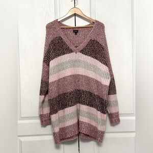 Torrid Women's Beautiful V-Neck Striped Sweater Size 3X Pink, Burgundy, Cream