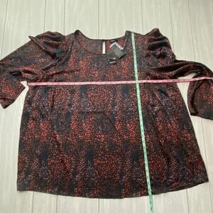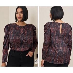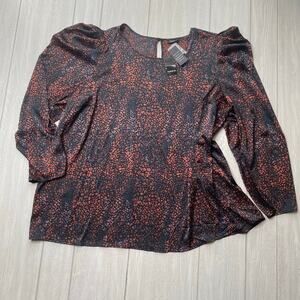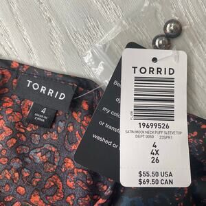 Torrid Women's Black Colorful Leopard Satin Puff Sleeve Blouse Plus Size 4X NEW