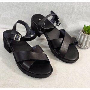 Torrid Women's Black Faux Leather Lug Heel Sandals Ankle Buckle Strap Size 9.5