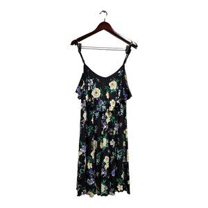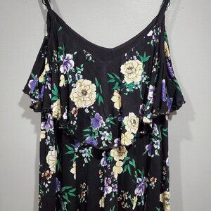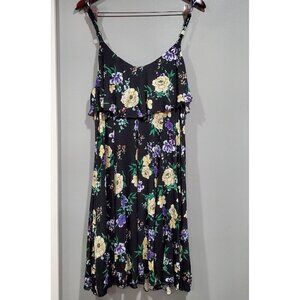 Torrid Women's Black Floral Trapeze Challis Dress Sleeveless Flowy V-Neck Sz 1X. Please note all measurements are approximate.