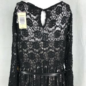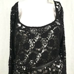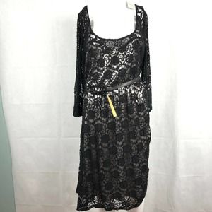 Torrid Womens Black Ivory Lace Long Sleeve Belted Sheath Dress Sz 0 12 Large NWT