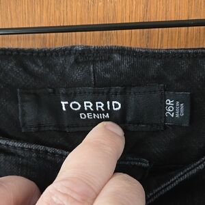 Torrid brand is stylish and versatile black jeans perfect for any occasion. Comfortable fit and sleek design. size 26 R.
