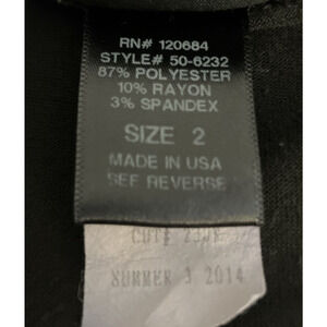 Material: 87% Polyester, 30% Rayon, 3% Spandex. Made in USA