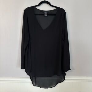 Torrid Women’s Black Long Sleeve V-Neck Hi/Lo Chiffon Blouse Sz 2, 2X 18-20 GUC