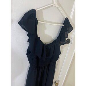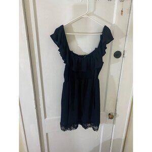 Torrid Women's Black Off Shoulder Mini Smoked Ruffle Lace Dress - 1XL